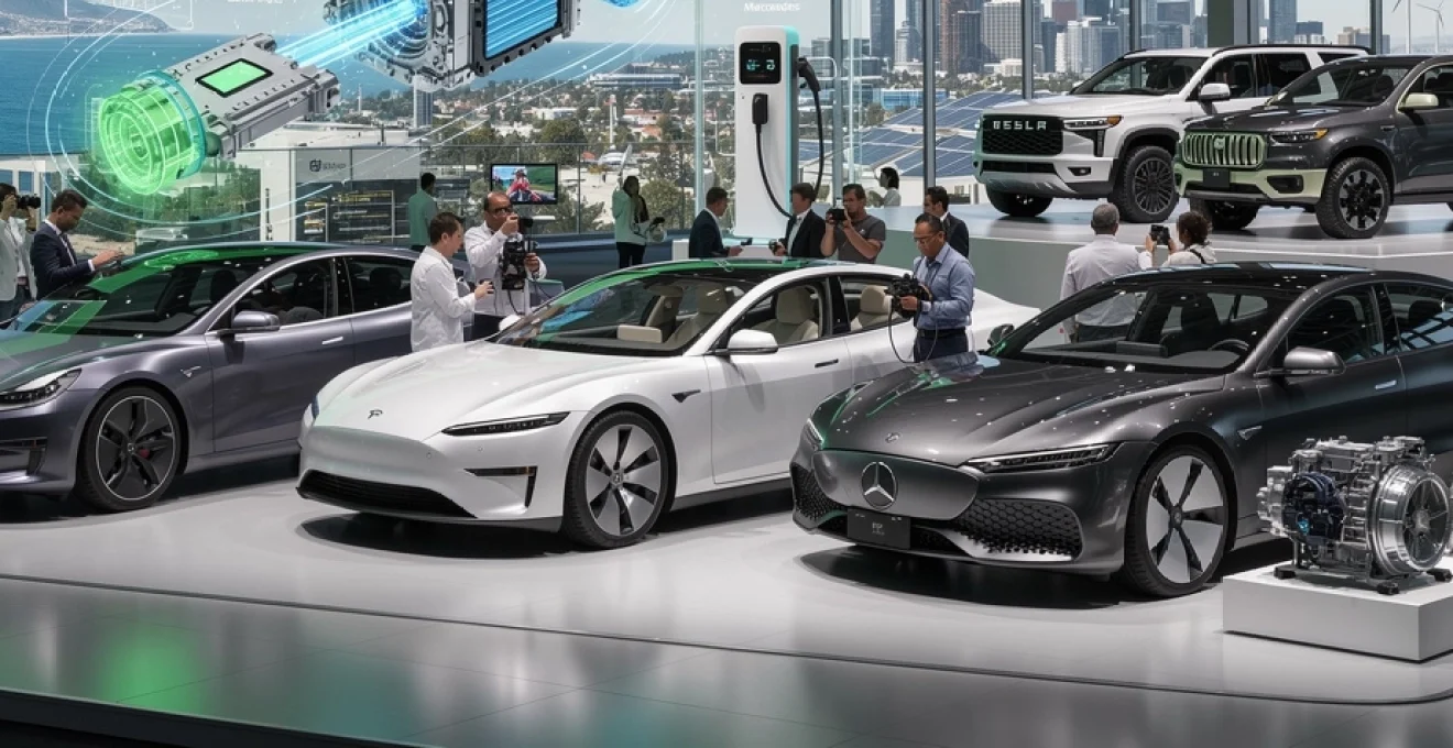 rapport à la génération précédente. Concrètement, cela se traduit par des autonomies réelles dépassant 500 km sur autoroute pour les berlines les plus efficientes, tout en conservant des performances dignes des sportives thermiques. Les stands des équipementiers mettent également en avant des cellules LFP (lithium-fer-phosphate) nouvelle génération, moins coûteuses et plus durables, destinées aux modèles de milieu de gamme qui constituent le cœur du marché californien. On observe ainsi au salon un mouvement clair vers une segmentation des chimies de batteries en fonction des usages : forte densité énergétique pour le haut de gamme, robustesse et coût optimisé pour les véhicules de grande série.